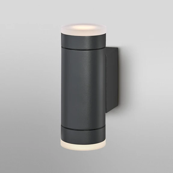 Vegglamper med mørkegråt hus i støpt aluminium, kapslingsgrad IP65, matt diffusor og G10-fatning. Produktkarakteristika: Tilgjengelig med PIR-bevegelsessensor og dagslyssensor. Indirekte belysning. Hus i støpt aluminium. Diffusor i glass eller PMMA. Kapslingsfarge: antrasitt. Produktfordeler: Stor fleksibilitet ved valg av pære takket være GU10-fatning. Enkel og rask installasjon. Bruksområder: Belysning av fasader. Inngangsbelysning. Terrasser, balkonger. Gangbelysning. Oppkjørsler. Teknisk utstyr: Komplett monterings- og tilkoblingsutstyr inkludert. Lyspære ikke inkludert. Sikkerhetsinformasjon: Alle elektriske tilkoblinger må kun utføres av kvalifisert fagpersonell. Forsiktig, fare for elektrisk støt. Produkt i beskyttelsesklasse I. Alle elektrisk ledende, metalliske husdeler som kan bli spenningsførende under drift eller ved feil under vedlikehold, må være koblet til jordlederen.