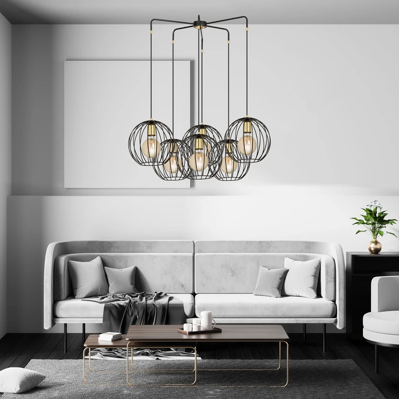 Pendellampen Albio 6 imponerer med sitt moderne design og bruken av høykvalitets stål. De seks stilige burskjermene i elegant svart gir hvert rom et spesielt preg og passer perfekt inn i moderne stuer og spisestuer. De klare linjene og det robuste materialvalget understreker lampens holdbarhet og kvalitet.