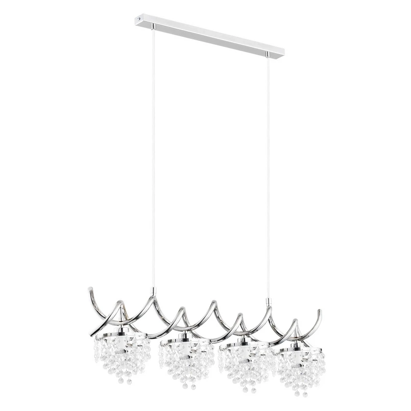 Pendellampen Kalea med 4 lyskilder og glassperler kombinerer stilig design og funksjonell belysning. Denne lampen er laget av høykvalitetsstål og dekorert med klart glass, og passer perfekt inn i ulike oppholdsrom som stue, kjøkken eller spisestue. Den sølvfargede finishen understreker det elegante utseendet og sørger for harmonisk integrering i ulike interiørstiler.