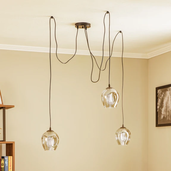 Pendellampe Starla, glass grafit, 3 lyskilder desentralisert