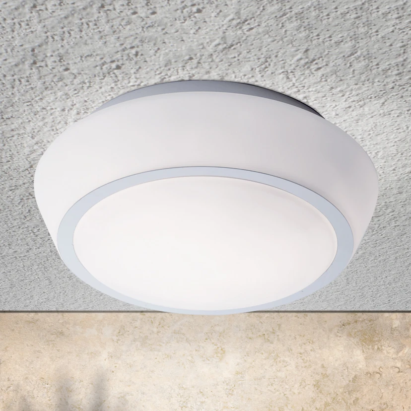 Pia taklampe med IP44 for badetNår det gjelder formen, er Pia taklampe holdt veldig enkel og klassisk, men den skiller seg ut på grunn av den forkrommede dekorative ringen. På en edel og elegant måte gir armaturen behagelig romlys. Takket være IP44 er den også godt rustet for fuktige forhold på badet.