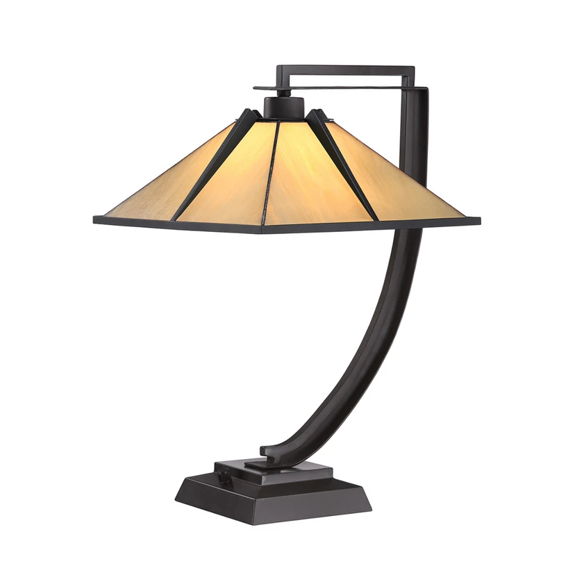 Pomeroy bordlampe, høyde 55 cm, bronse, glass, stål