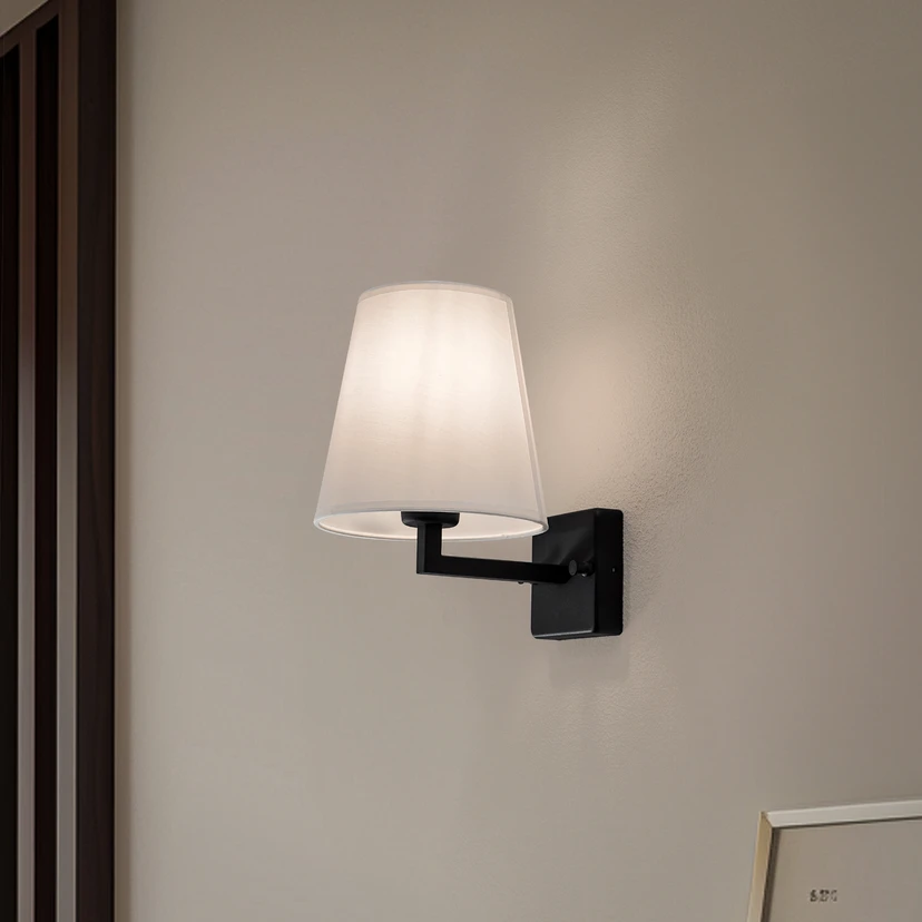 Profile 4659 vegglampe, svart, hvit stoffskjerm