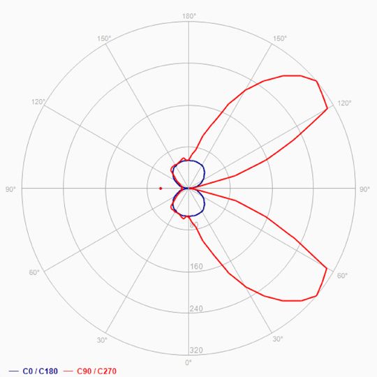 Lampen av ekstrudert aluminium består av en ytre ramme og et innvendig pyramidelignende element. Det varmhvite lyset fra LED-pærene faller på veggen over og under lampen, og skaper en behagelig grunnbelysning i rommet.