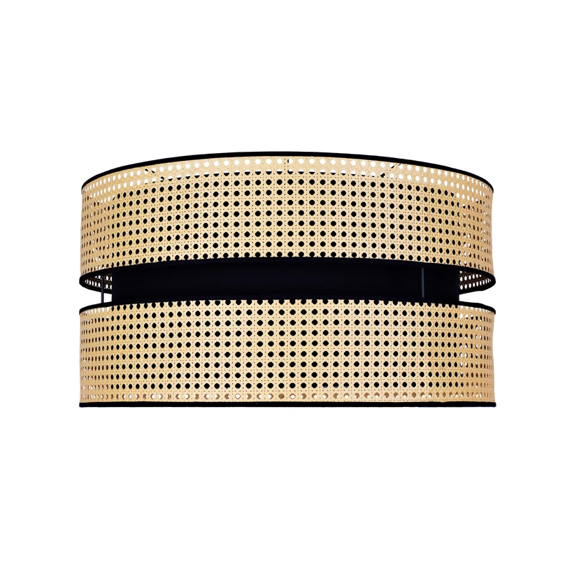 Rund taklampe Big Duo laget av rotting og bomull - i sort-beige farge