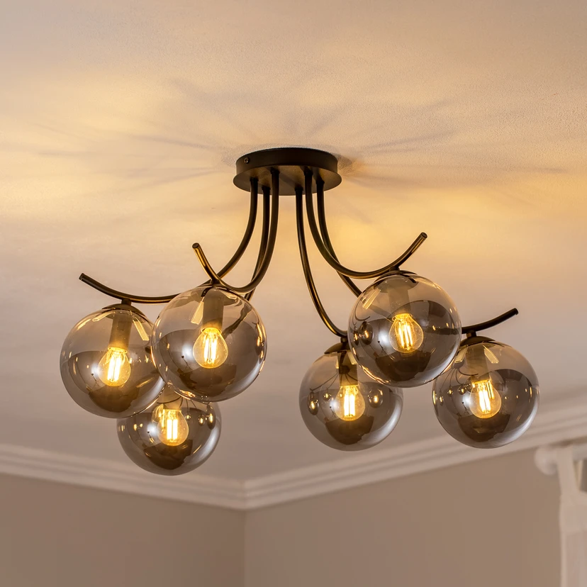 Taklampe Boston, svart/grafitt, 6 lyskilder