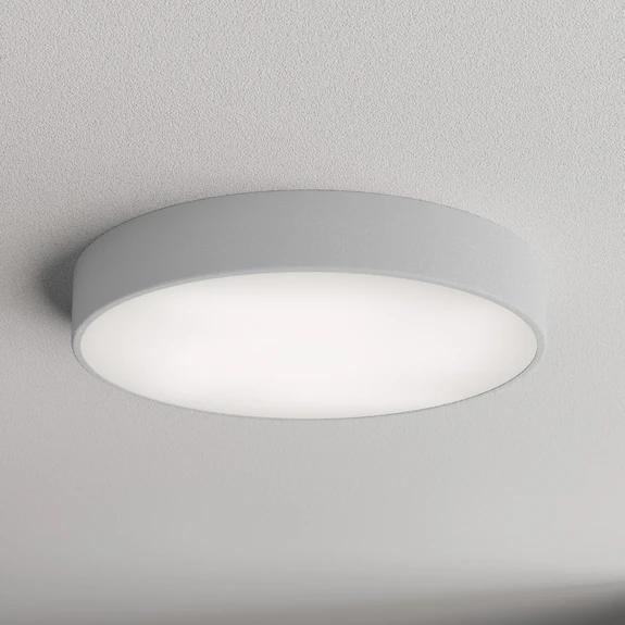 Taklampe Cleo 500, grå, sensor, IP54, Ø 50 cm, metall