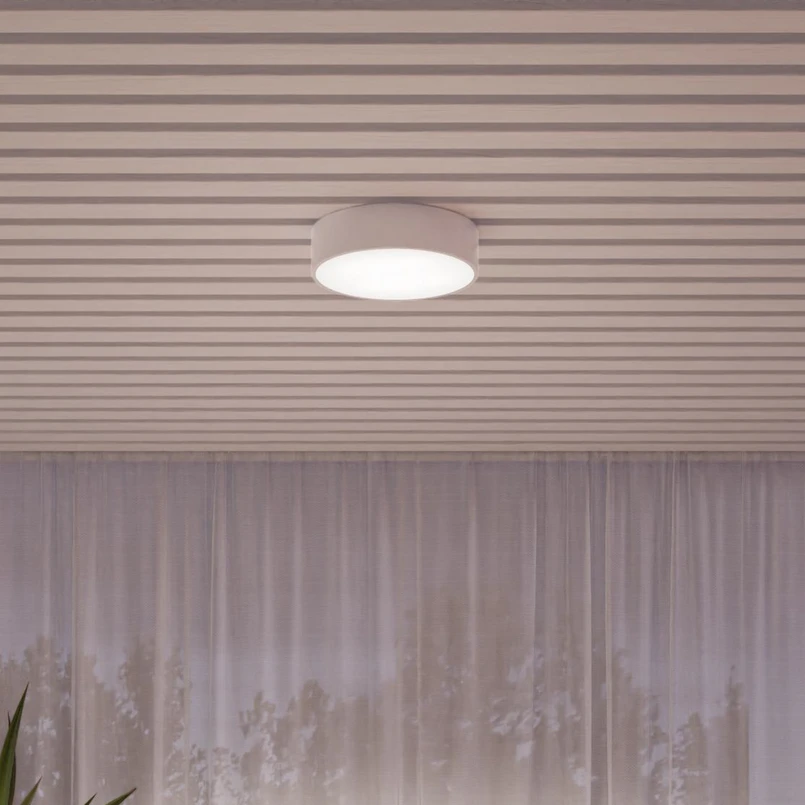 Den runde taklampen Cleo gir god belysning i rommet og er takket være kapslingsgrad IP54 også en optimal lyskilde for grunnbelysning på bad og andre våtrom.