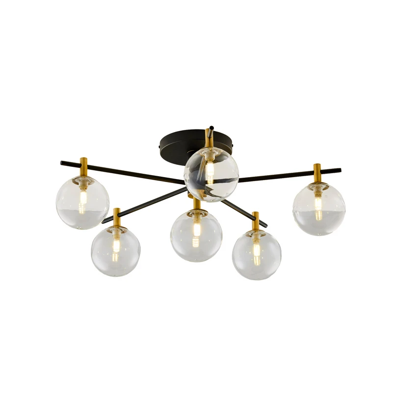 Taklampen Figaro kombinerer moderne design med høykvalitetsmaterialer som glass og stål. Konstruksjonen med 6 lyskilder sørger for jevn og imponerende belysning som gir ethvert rom en spesiell atmosfære. Kombinasjonen av svart, gull og klar finish understreker den elegante estetikken og gjør den til et blikkfang i ethvert stue eller gang.
