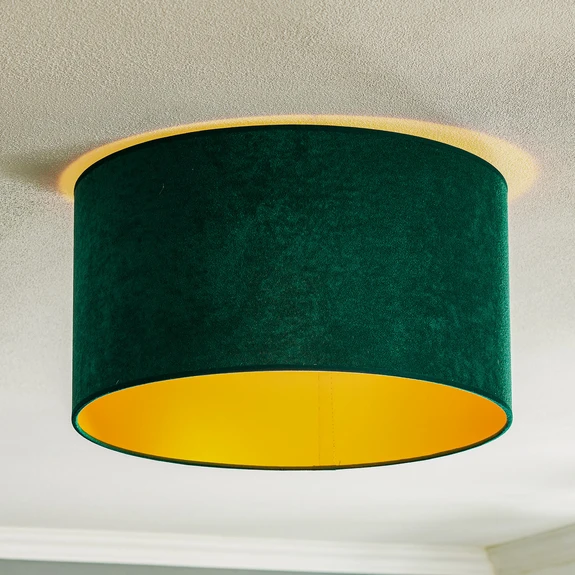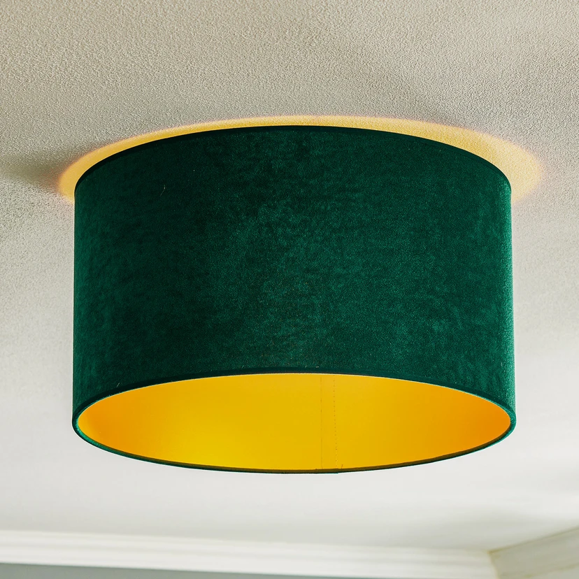 Taklampen Golden Roller Ø 40 cm i mørkegrønn og gull kombinerer stilig eleganse med en fascinerende fløyelsaktig tekstur. Den er laget av høykvalitets fløyelsstoff og gir ethvert rom en luksuriøs atmosfære. Enten i stuen, gangen, soverommet eller spisestuen – denne lampen setter stilfulle aksenter overalt. Kombinasjonen av mørkegrønn skjerm og gyldne detaljer sørger for et harmonisk og samtidig edelt utseende.