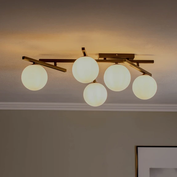 Taklampen Smart, svart/opal, 5 lyskilder, kombinerer moderne design med høy kvalitet. Denne lampen er laget av pulverlakkert stål og glass og passer perfekt inn i ulike rom, som stue, kjøkken, gang eller spisestue. Den stilige kombinasjonen av svart og opal finish gir ethvert rom et elegant preg.