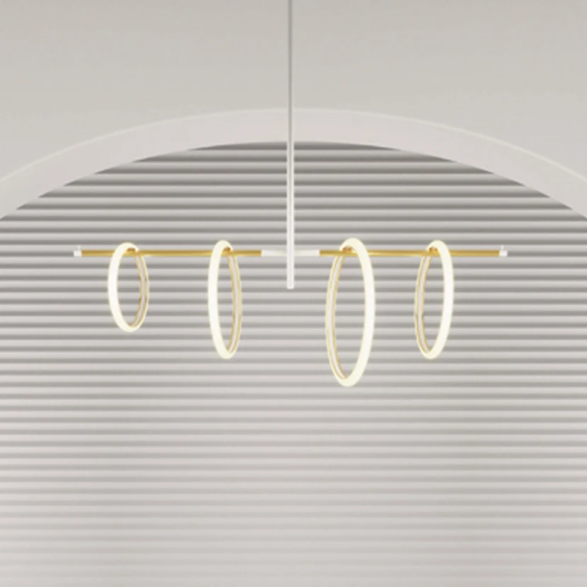 Designpåvirket LED-hengelampe Ulaop med fire lysende LED-ringer
