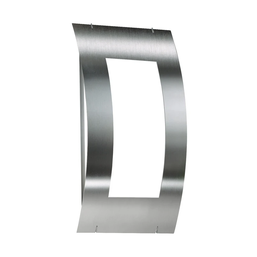 Den utendørs vegglampen i rustfritt stål og satinert akryl imponerer ikke bare med sitt moderne design, men også med sin høye kvalitet og gode finish. Den er produsert i Tyskland. I den lett buede, rektangulære rammen er det montert satinert akryl som diffusorer, som gir et jevnt og blendfritt lys både foran og indirekte til siden og nedover, og som i tillegg til å belyse inngangspartiet eller terrassen også gir en svært dekorativ lyseffekt på fasaden.