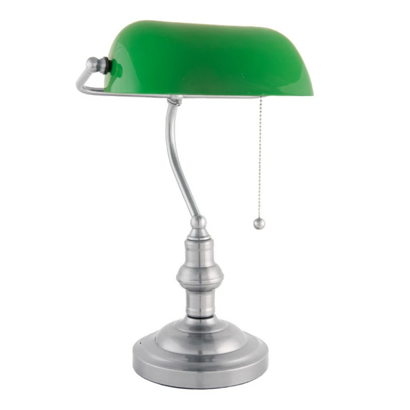 Verda benklampe - en juvel på skrivebordetVerda benklampe gjør det ikke bare behagelig å arbeide ved skrivebordet med sterkt, blendingsfritt lys, men er også et dekorativt høydepunkt med en helt spesiell karakter. Den grønne lampeskjermen og den elegante metallfoten danner en flott fargekombinasjon. I tillegg er denne vakre skrivebordslampen utstyrt med en praktisk trekkbryter som gir en ekstra dekorativ aksent. Den grønne lampeskjermen kan justeres i henhold til det aktuelle lysbehovet.
