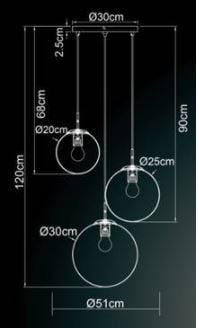 Hengelampen Varus med tre lyskilder er et arrangement av ravfargede glasskuler på en takbaldakin med brun overflate. Kulene er spiralformede, av forskjellige størrelser og på ulike høyder, noe som skaper en flott tredimensjonal stil. Glasskulene er gjennomsiktige og gir innsyn til lyspærene. Både materialblandingen og de naturlige tonene i brunt gir lampen en varm atmosfære, spesielt når lyset er slått på.