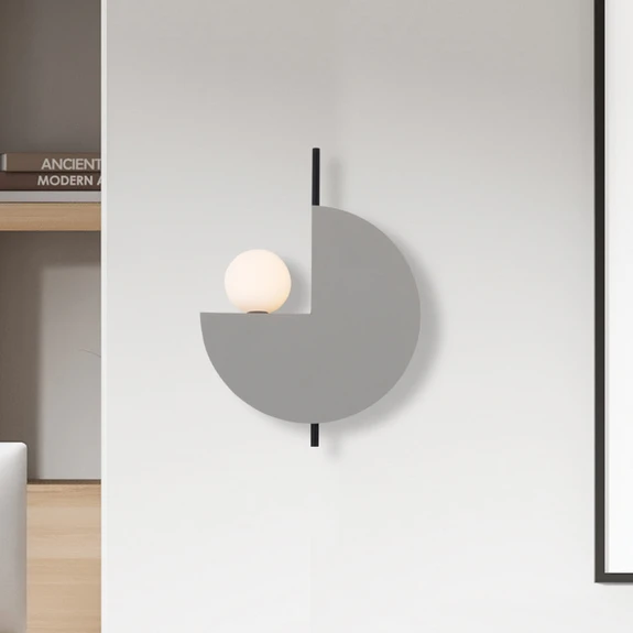Vegglampe 22205, grå, metall, opalt glass, Ø 26 cm, G9
