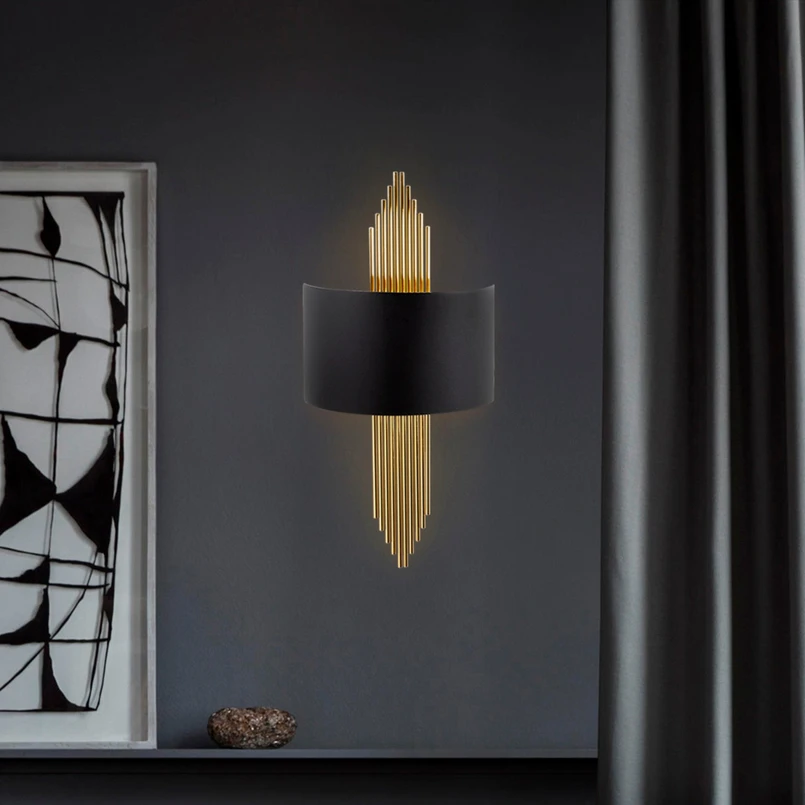 616-A vegglampe: eleganse møter funksjonalitet i svart og gull Oppdag 616-A vegglampe, et mesterverk av moderne design som ikke bare imponerer med sin stilrene fargekombinasjon i svart med gylne aksenter, men også med sin allsidighet i ulike rom som stue, spisestue, gang og soverom. Dette belysningselementet er produsert i Europa og står for kvalitet og lokalt håndverk. 616-A vegglampe er en ressurs i ethvert interiør og skaper en atmosfære som er både koselig og inspirerende. Selv om lampen ikke har en integrert dimmer, kan den enkelt justeres via en ekstern dimmer for å skape den lysstemningen du ønsker. Med 616-A vegglampe kan du få et stykke moderne eleganse inn i hjemmet ditt som vil påvirke stemningen på en unik måte og bade hvert rom i et nytt lys.