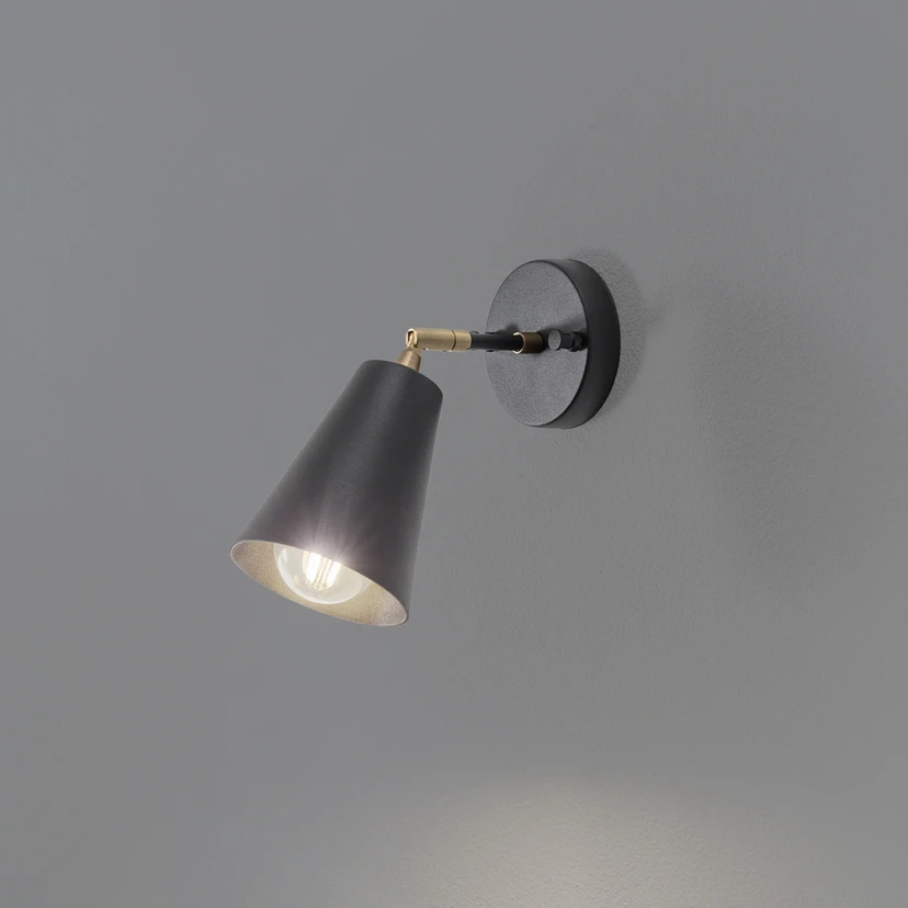 Vegglampe Evander, svart/gull, metall, høyde 21 cm, E27