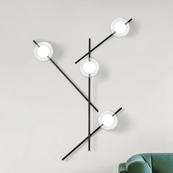Vegglampe Mikado, klar/frostet, 4 lyskilder