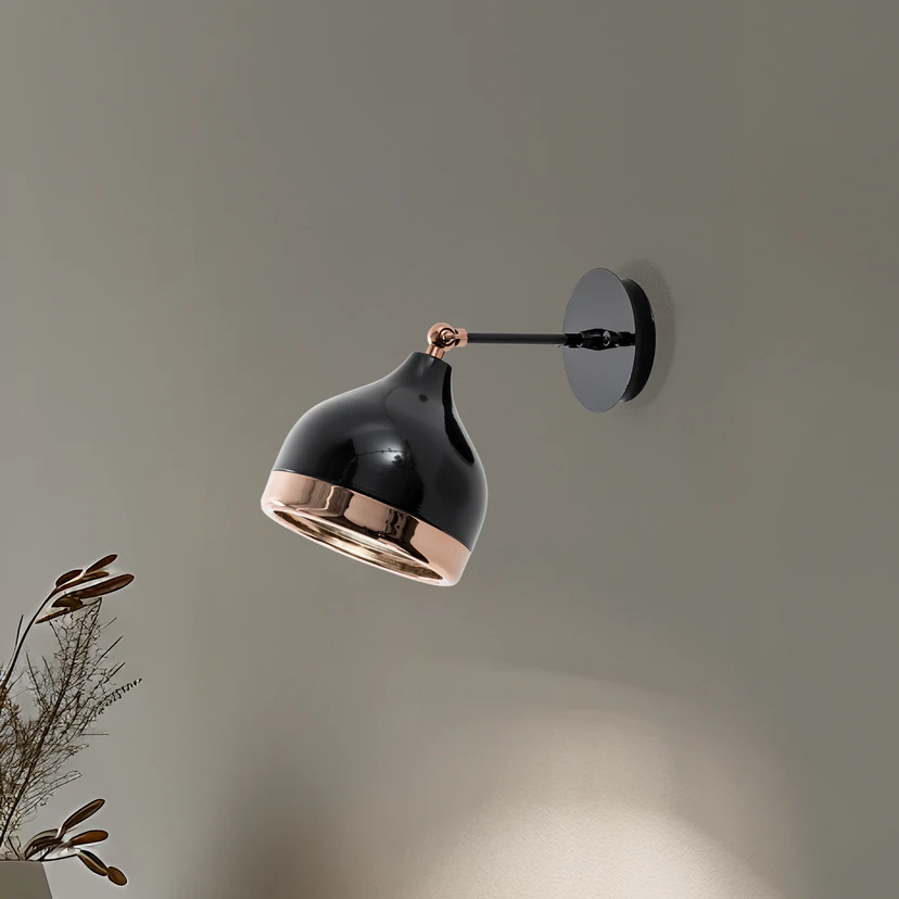 Vegglampe Yildo 6901 kombinerer moderne design med høykvalitetsmaterialer og er et blikkfang i alle rom. Den er laget av robust jern og kommer i elegante farger som svart og kobber, og passer perfekt inn i ulike interiørstiler. Enten i stuen, spisestuen, gangen eller soverommet – Yildo 6901 sørger for stilig belysning og setter accenter som gir rommet et løft.