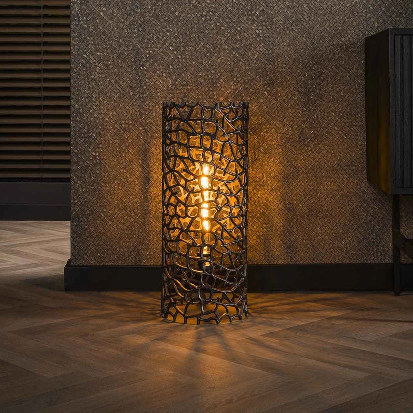 Weaver bordlampe - sylinder av uregelmessig metallnett Med sin karakteristiske design er Weaver bord- og gulvlampe et umiddelbart blikkfang: Den sylinderformede kroppen består av et åpent, uregelmessig aluminiumsnett med nikkelfinish. Pæren som skal brukes, er synlig fra utsiden; en rørpære med en lengde på 30 cm anbefales.